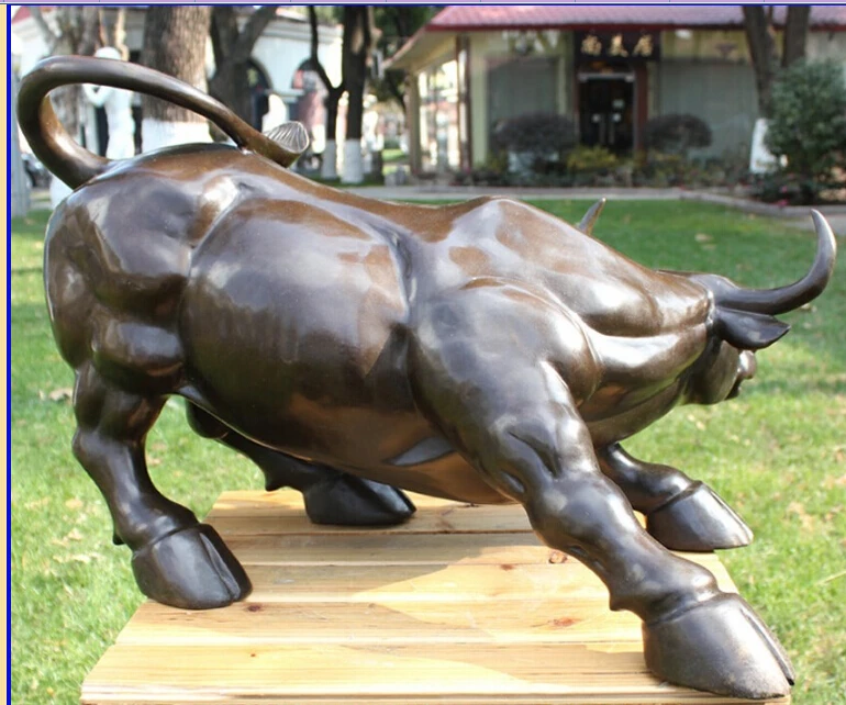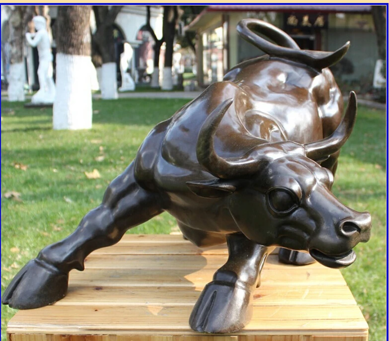 free Western Bronze Copper Fengshui Sculpture Wall Street Bull Cow Cattle OX Statue fast