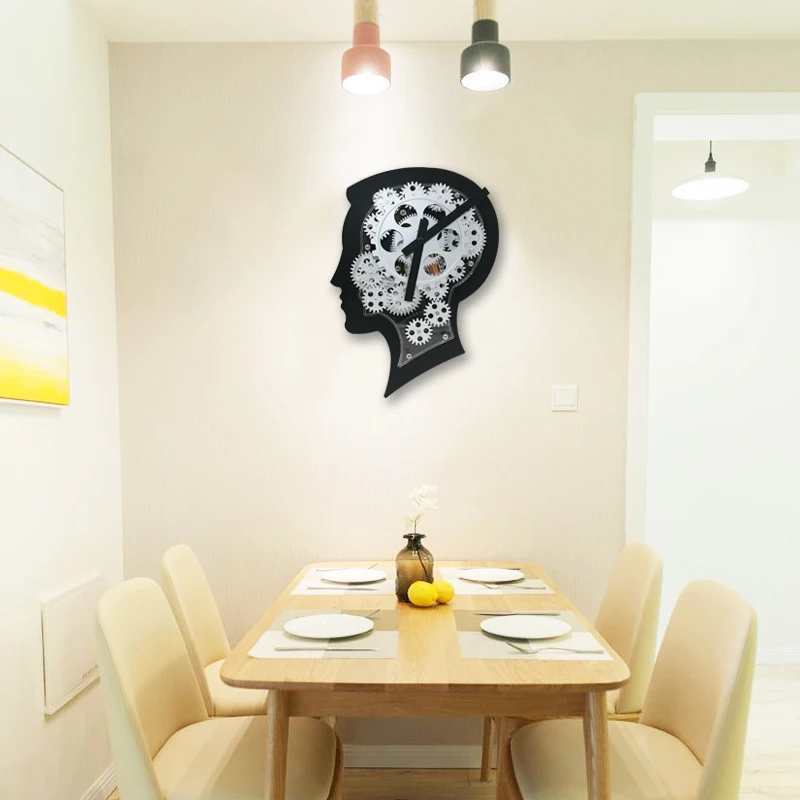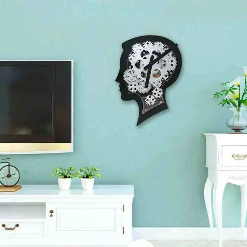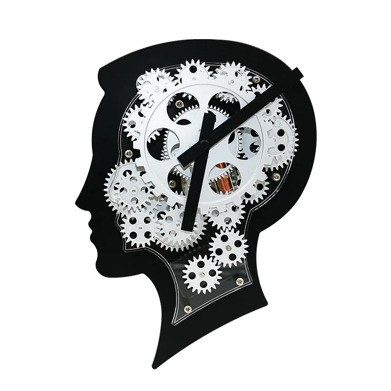 HY - G108 Wonderful Brain Model Wall Clock Mechanical Gear Dynamic Design - BLACK