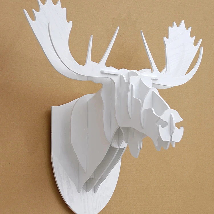 3D Puzzle Wooden DIY Creative Moose Head Wall-mounted Wood Gift Craft Home Decor Murals Nordic Moos