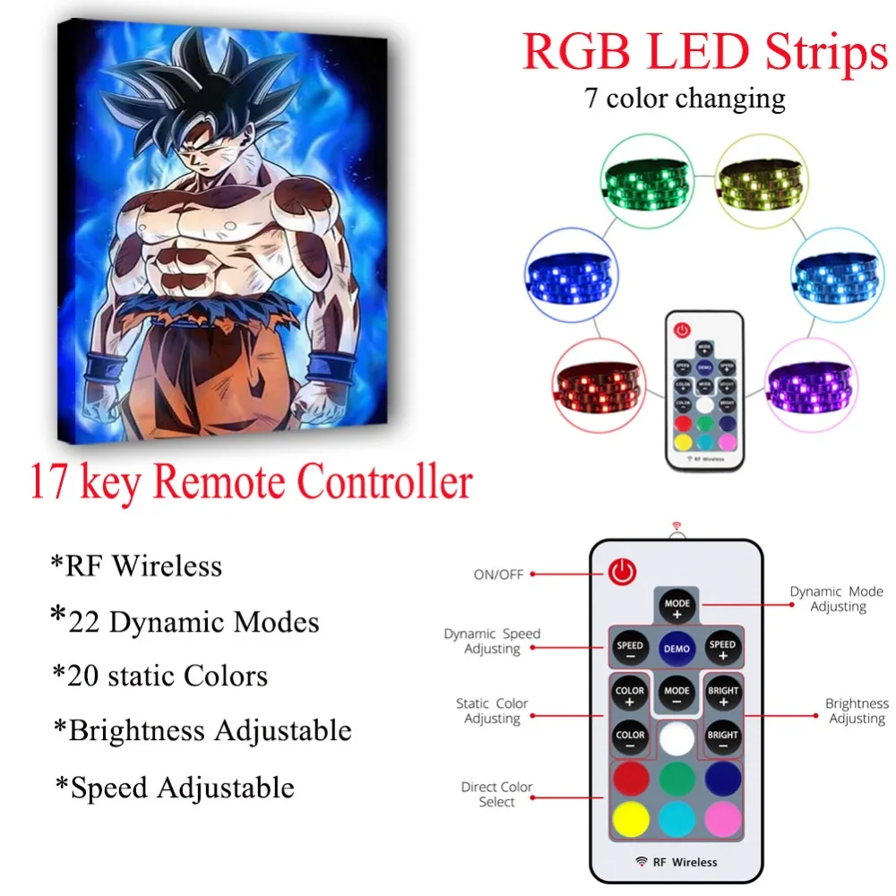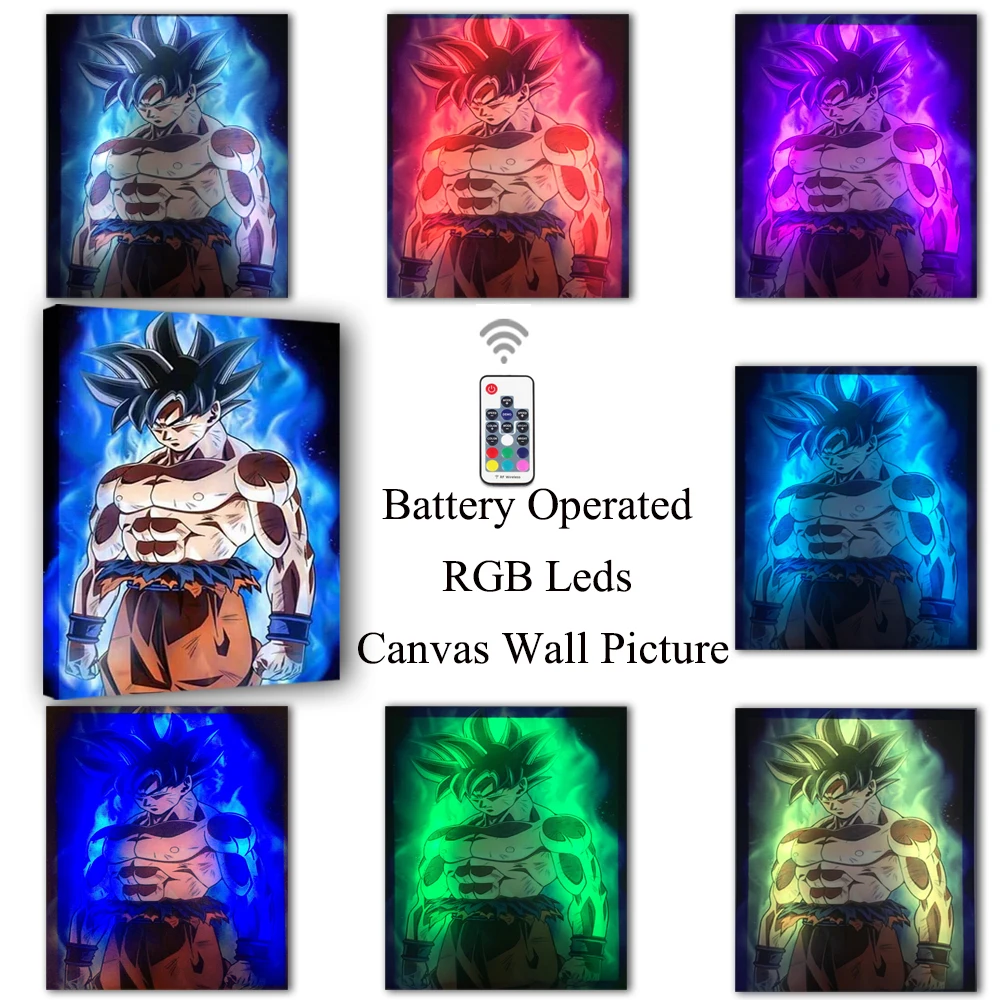 RGB Led Canvas Wall Decorative with remote control Dragon Ball Super Goku Picture Canvas Print Illu