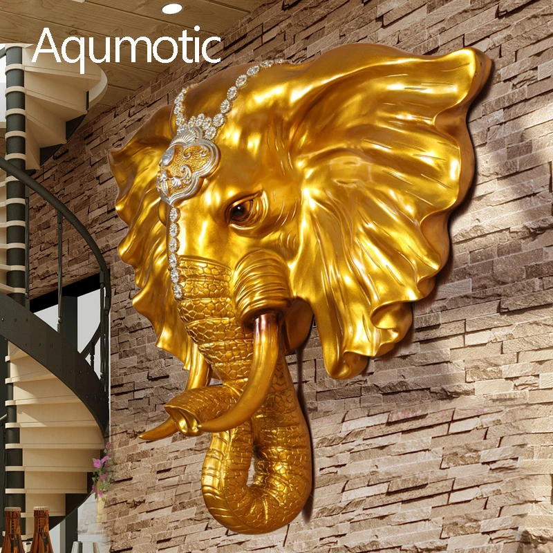 Aqumotic Wall Elephant Decor Lucky Animal Gifts Statue 3d Elephants Lovie Head Luck Steiff Resin Ar