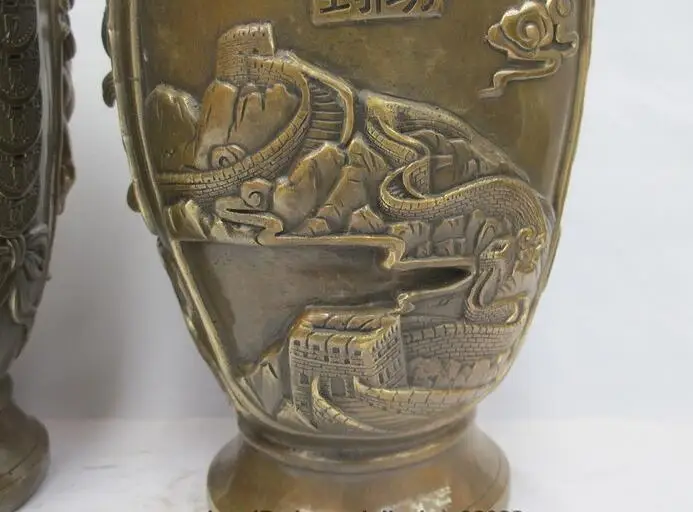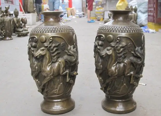 China Royal Bronze Copper Great Wall Lucky Coin Wealth Horse Palace vase pair