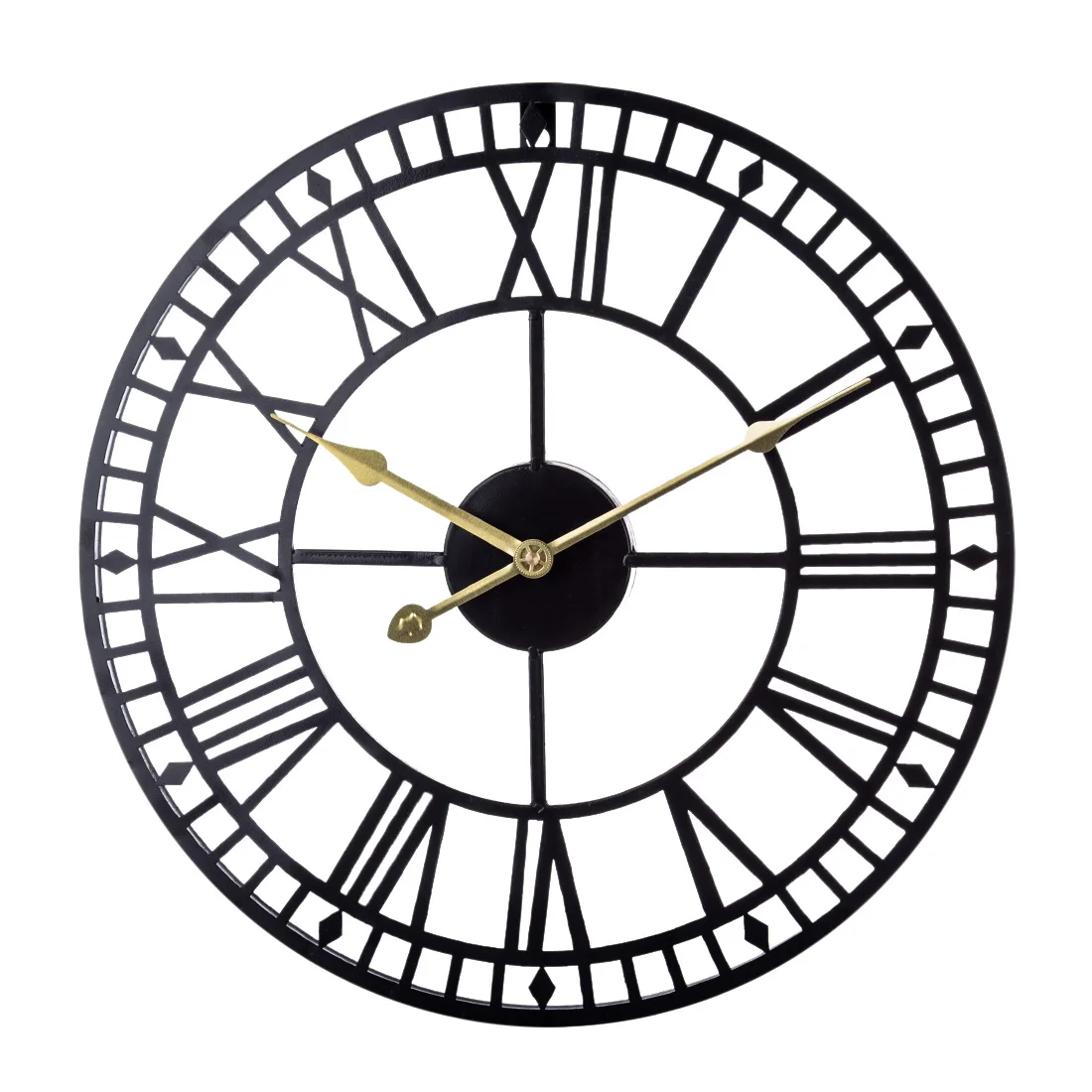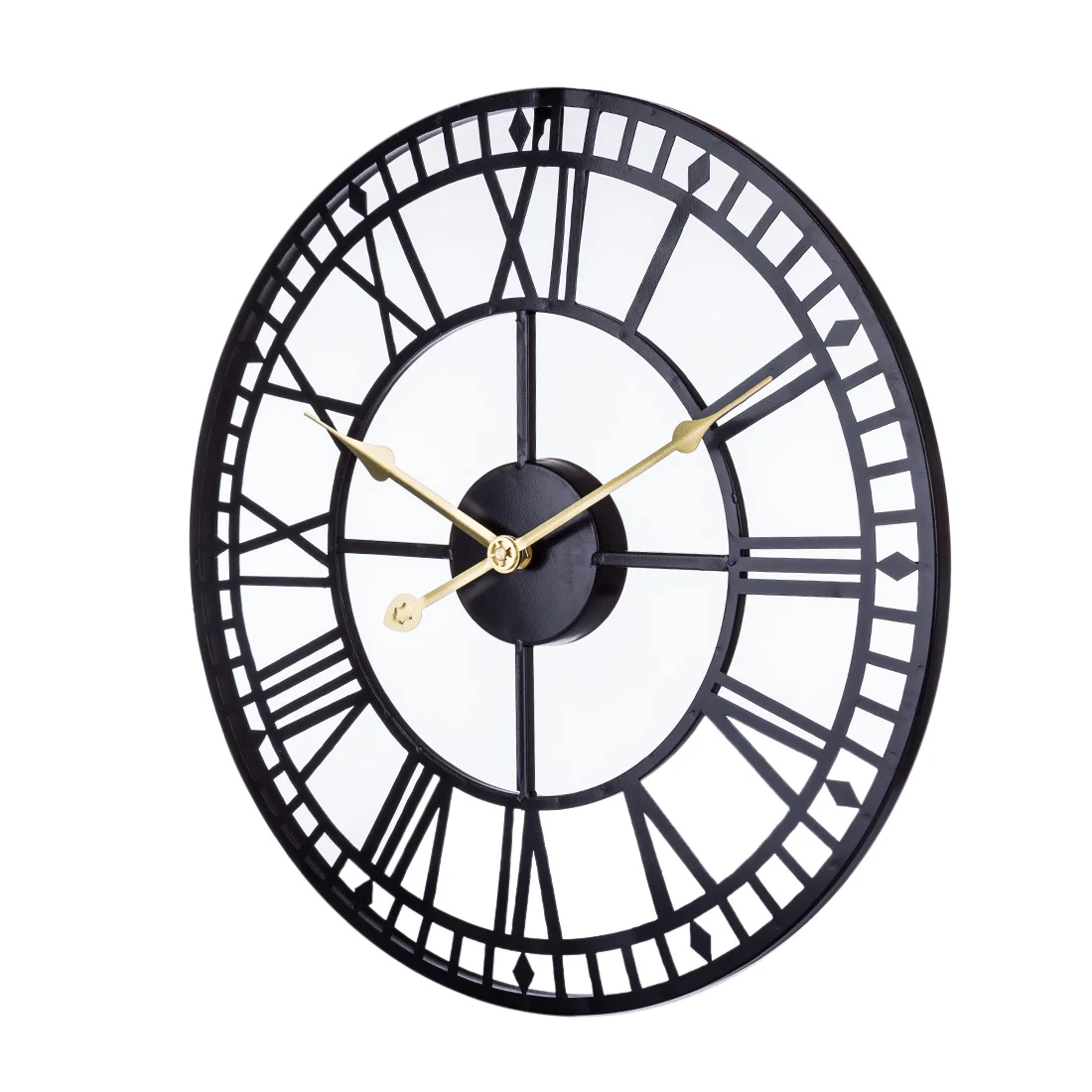 Hot 16 Inches 40cm Iron Hollow Wall Clock Roman Numerals Silent Wall Clock Hanging Clock For Home L