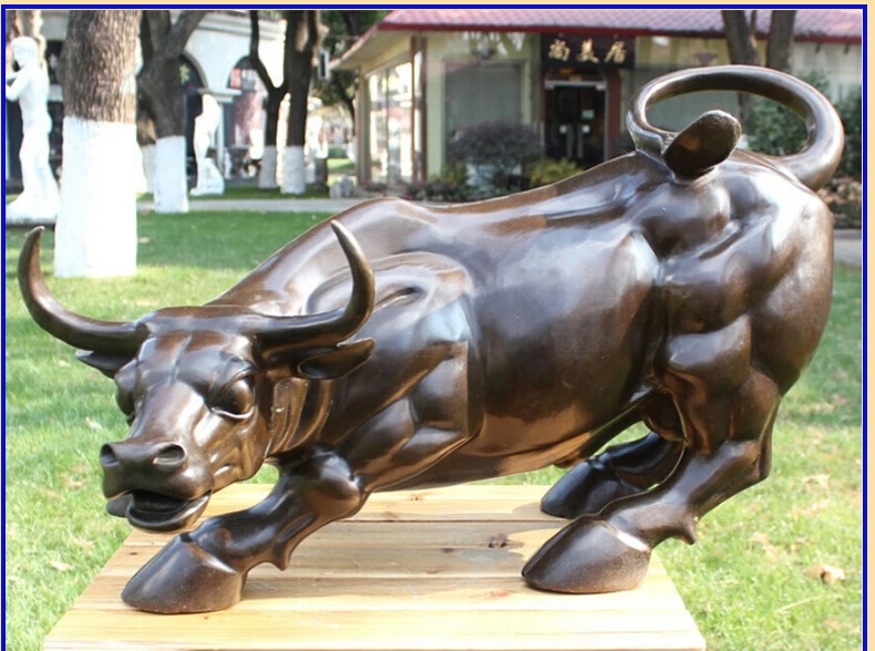 Western Bronze Copper Fengshui Sculpture Wall Street Bull Cow Cattle OX Statue