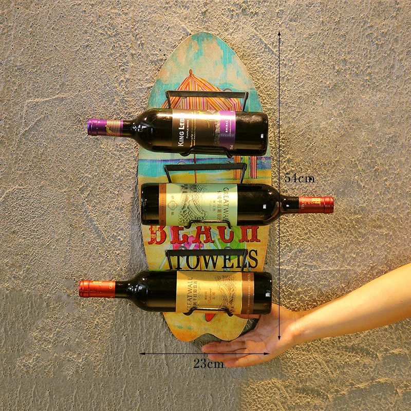 Review Wine Holder 3 Wine Bottles American Retro Iron Wine Rack Shelf Wall Mural Pendant Personality Cafe