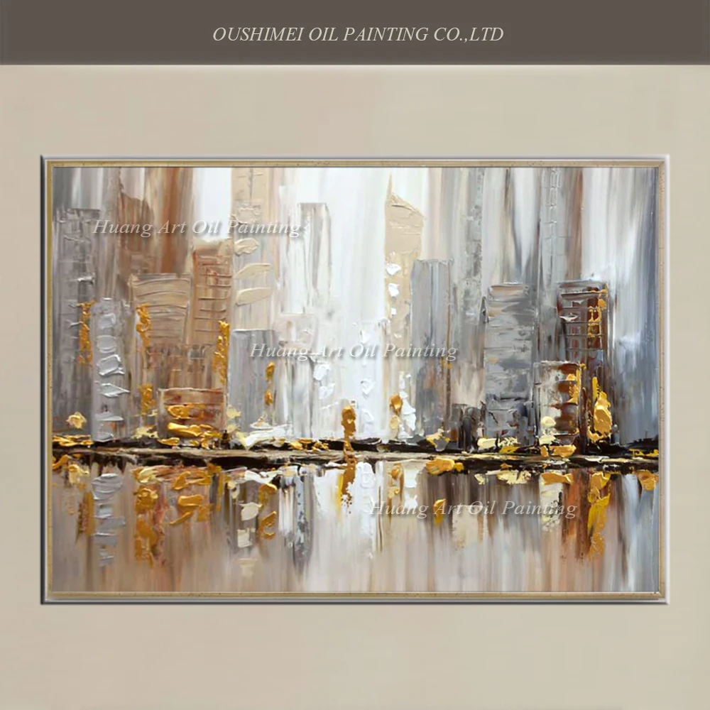 HIGH QUALITY Original Hand Painted Modern Knife Building Scenery Oil Painting Wall Decor Street Landscape For Ro