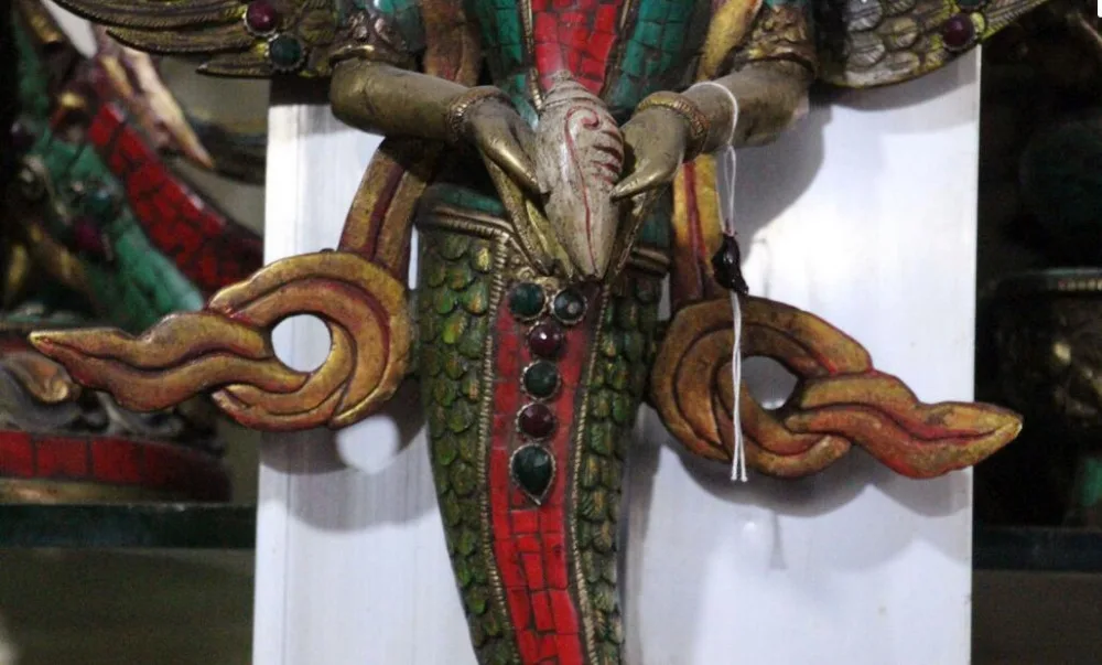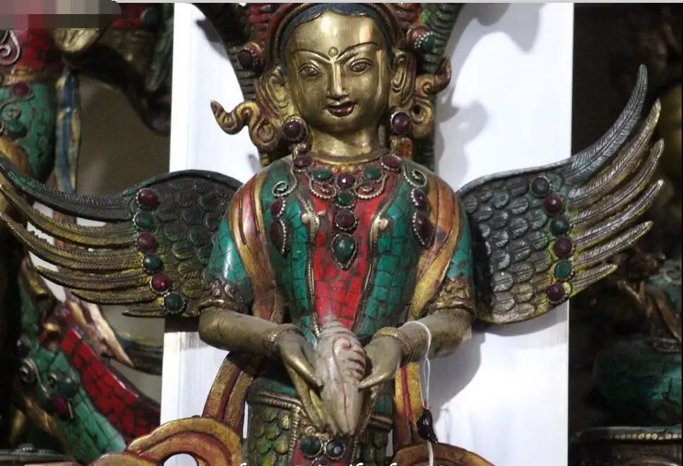 BEST SELLER 20"Nepal Turquoise Coral Gem 5-Heads Snake Naga Kanya Buddha Wall Handing Statue