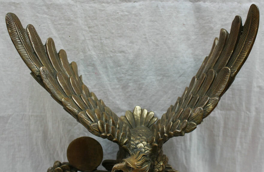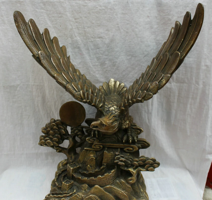 song voge gem S2716 20" Chinese Bronze Wealth Pine Tree Sun Fly Eagle Hawk Statue On Great Wall