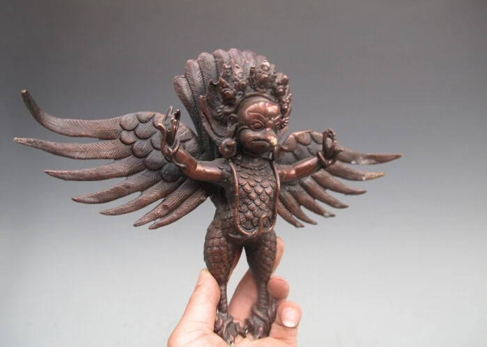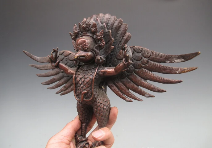 REVIEW TOP SELLER wholesale factory 12"Tibet Buddhism Pure Bronze Garuda Bird VaJra Buddha Wall hanging Statue