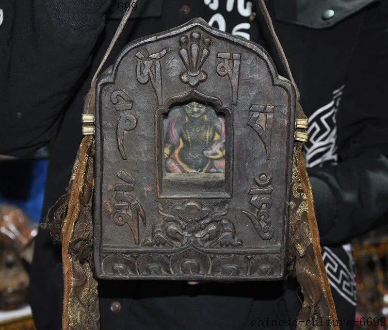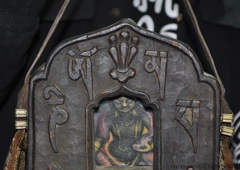 Review christmas Tibet Tantric Old wood carving Tibetan Text Yellow Jambhala Shrines Wall Hanging hallowee